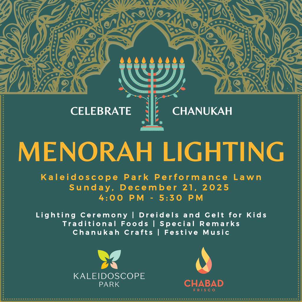 Join us for a special Menorah Lighting celebration on Sunday, December 21, hosted by Kaleidoscope Park and Chabad of Frisco!