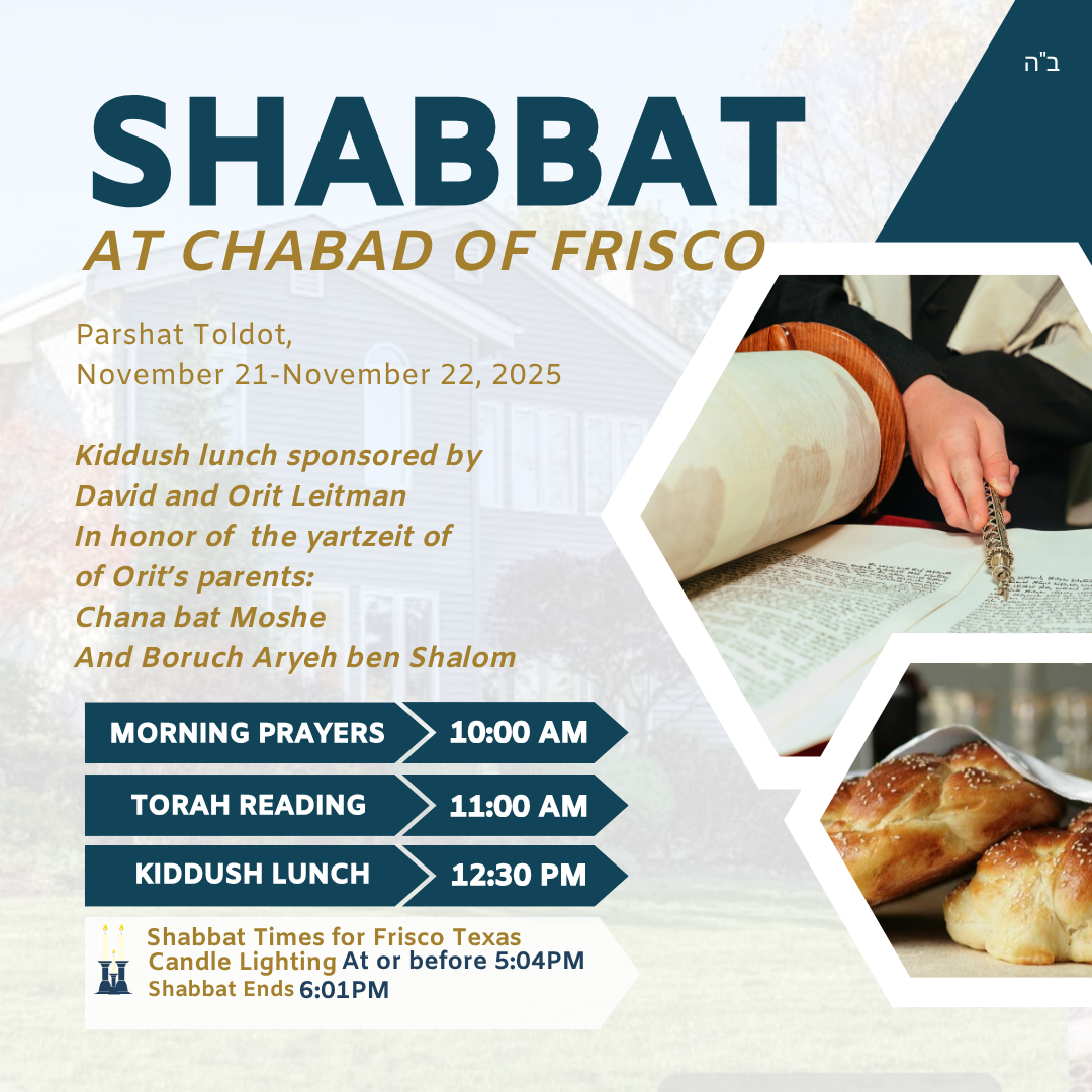 Chabad of Frisco offers Shabbat and Holiday Services that are joyous, engaging and uplifting.