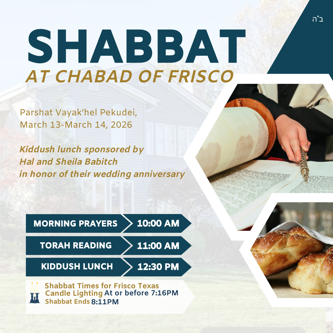Chabad of Frisco offers Shabbat and Holiday Services that are joyous, engaging and uplifting.